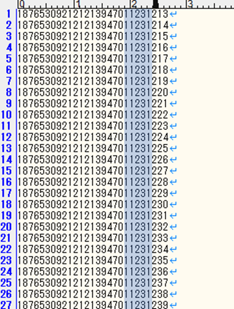 規則的な配列のデータや、コードの一部だけを縦列にまとめて削除や選択したいことありませんか? そういう時に重宝して使用しているのが「矩形選択」です。 ※今回はsakuraエディタを使用しています。